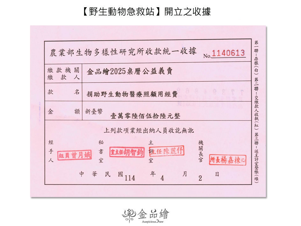 金品繪十年紀念2025雙月曆-公益義賣捐款徵信表