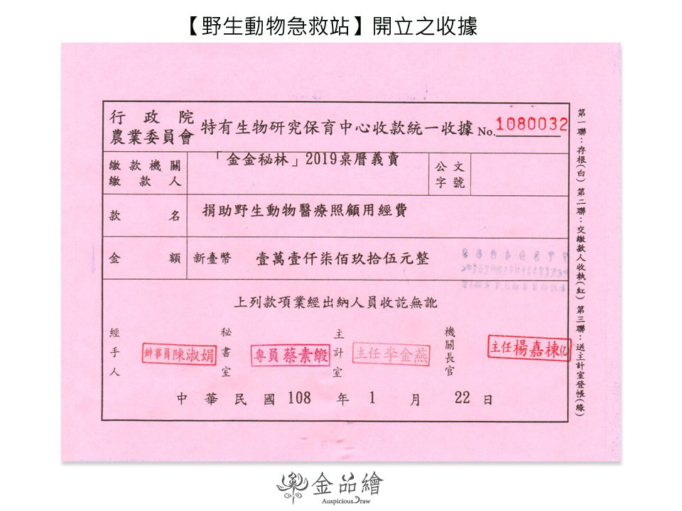 「金金秘林」2019桌曆-公益義賣捐款徵信表