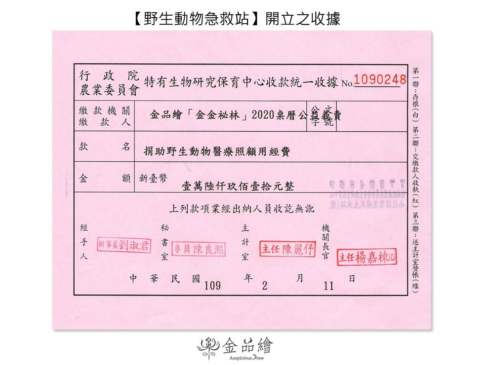 | 「金金秘林」2020桌曆-公益義賣捐款徵信表 |