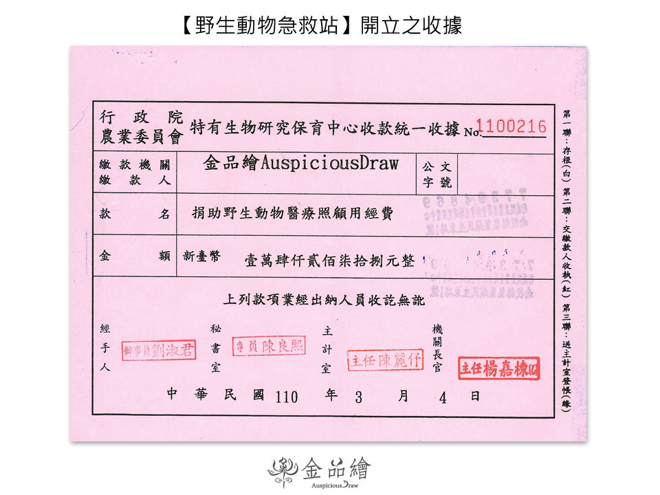 | 〈金金秘林〉 2021桌曆-公益義賣捐款徵信表 |