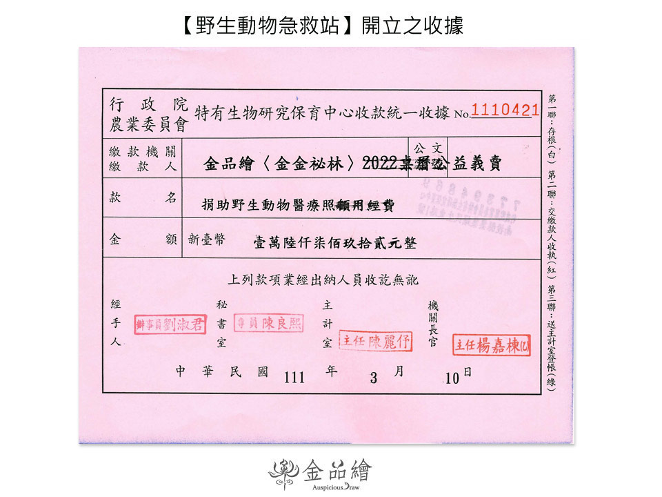 | 〈金金秘林〉 2022桌曆-公益義賣捐款徵信表 |